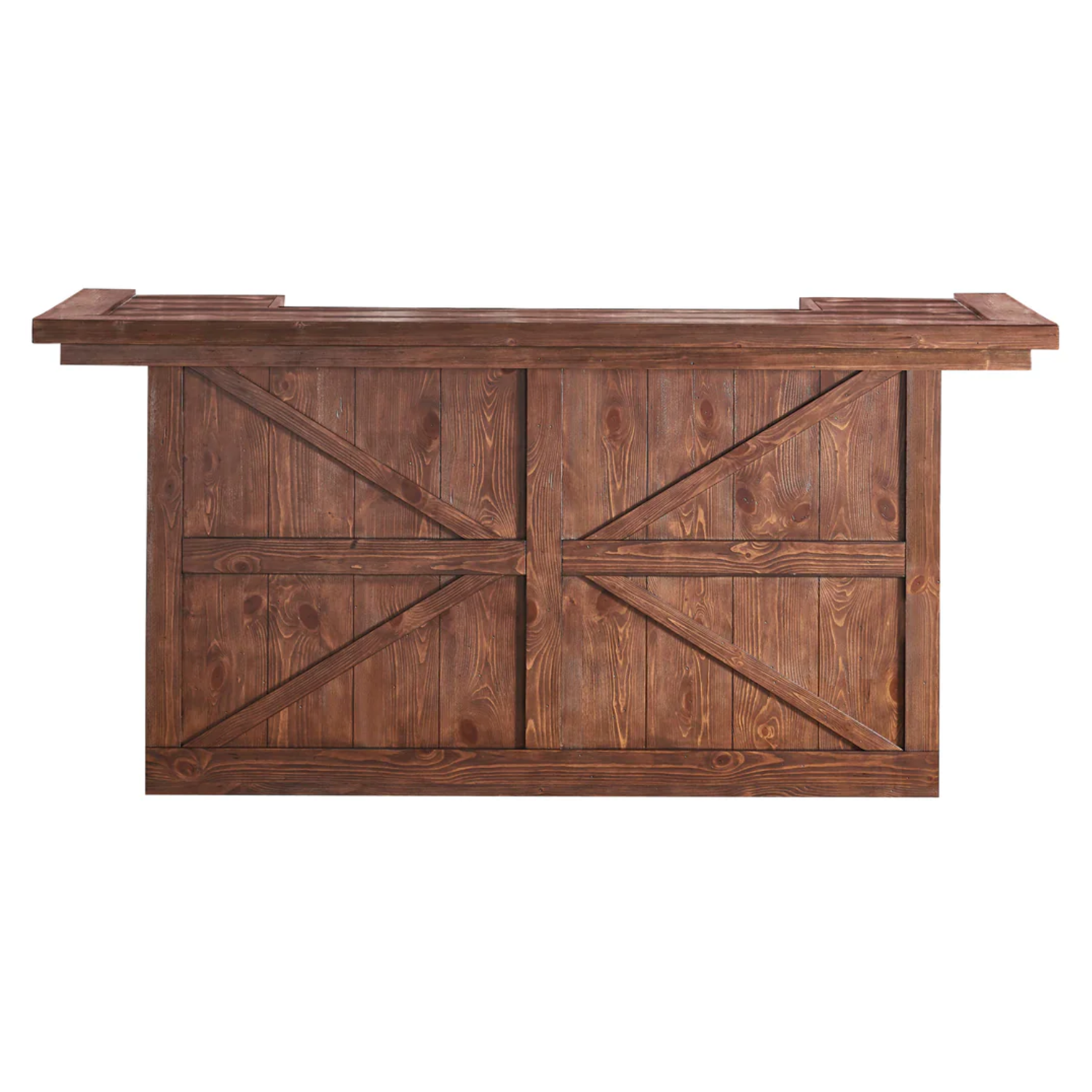 The barn side styled Bristol Bar comes complete with a built-in stone cutting surface, stemware holders and a removable ice bucket. This bar is also equipped with an Easy-Glide storage drawer, locking cabinet doors and storage shelving to serve all your entertaining needs. Classic knotty pine is finished in Rustic Brown for an inviting and homey finish. Charcoal finished bronze hardware accents complete the look.