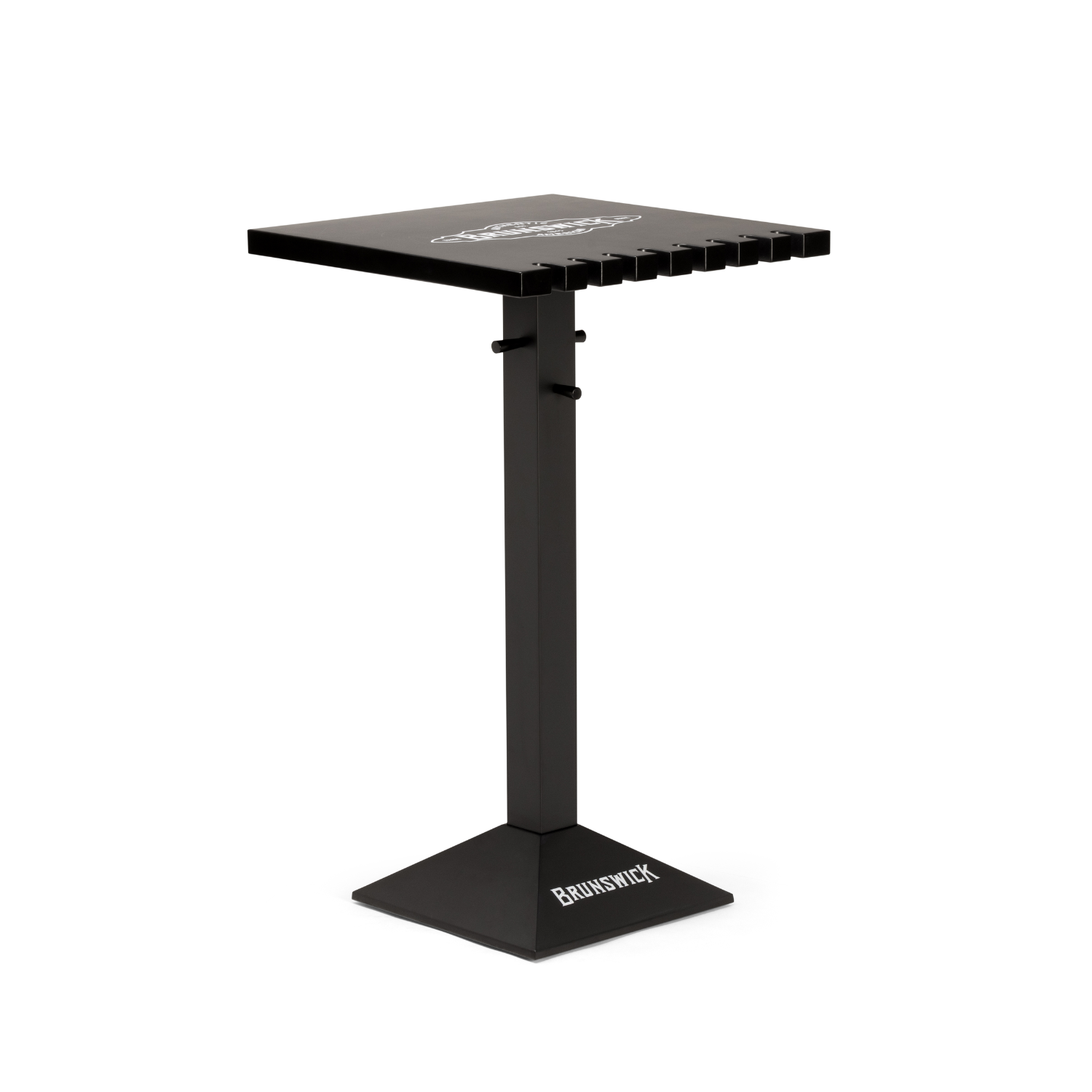 Built for heavy use in commercial or home settings, the Brunswick Arena Pub Table combines durability with style. Its metal base and wood top handle frequent play, and the matte black finish with a clear-coated Brunswick shield logo resists wear over time. Designed for convenience, it holds up to eight cues and includes multiple dowels and hooks for player accessories like bags, purses, and jackets.