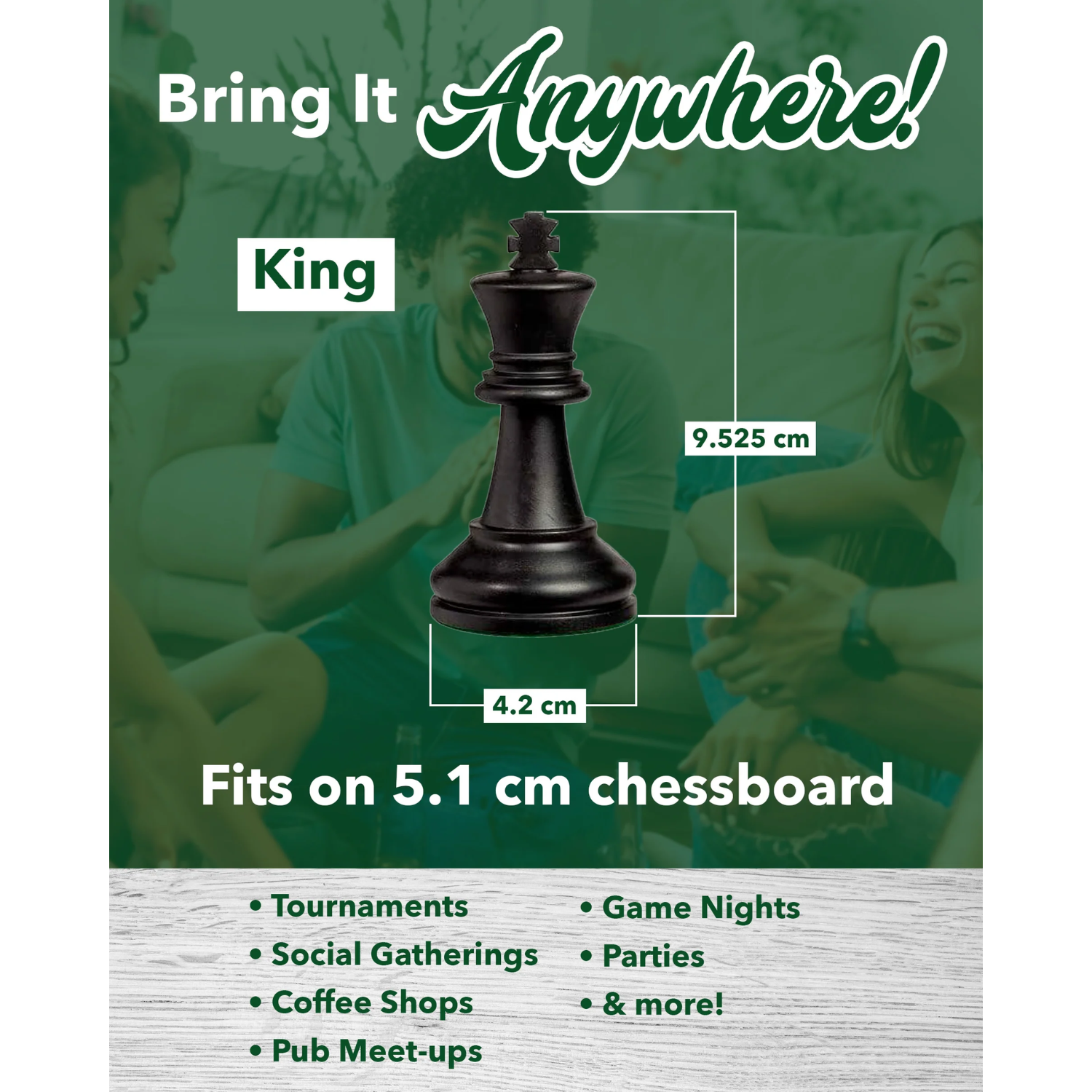 - MEETS STANDARDS FOR CHESS TOURNAMENTS: Chess pieces meet all US Chess Federation and FIDE world standards for tournament chess play. Can be used with a wooden chess set or tournament chess board