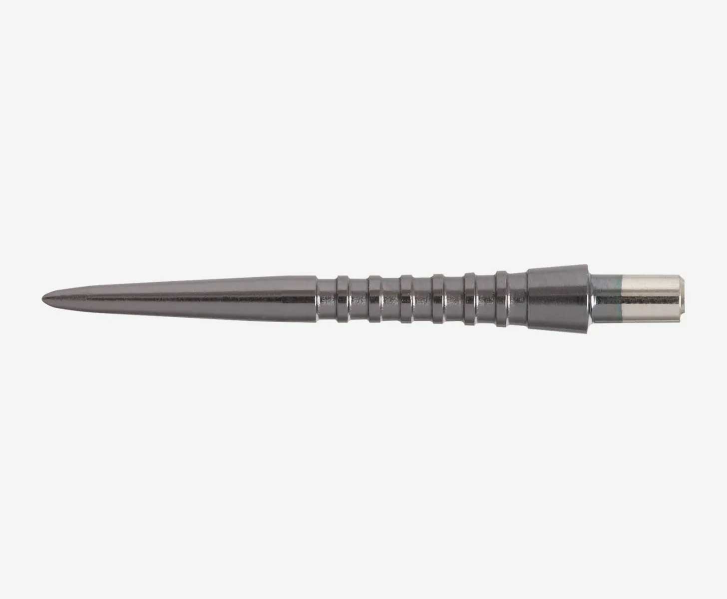 Target's Storm Point, uniquely designed and fully machined profiled dart point with deep cut grooves for ultimate finger grip. Creates the and feel of a one-piece dart, for reduced flight deflection.