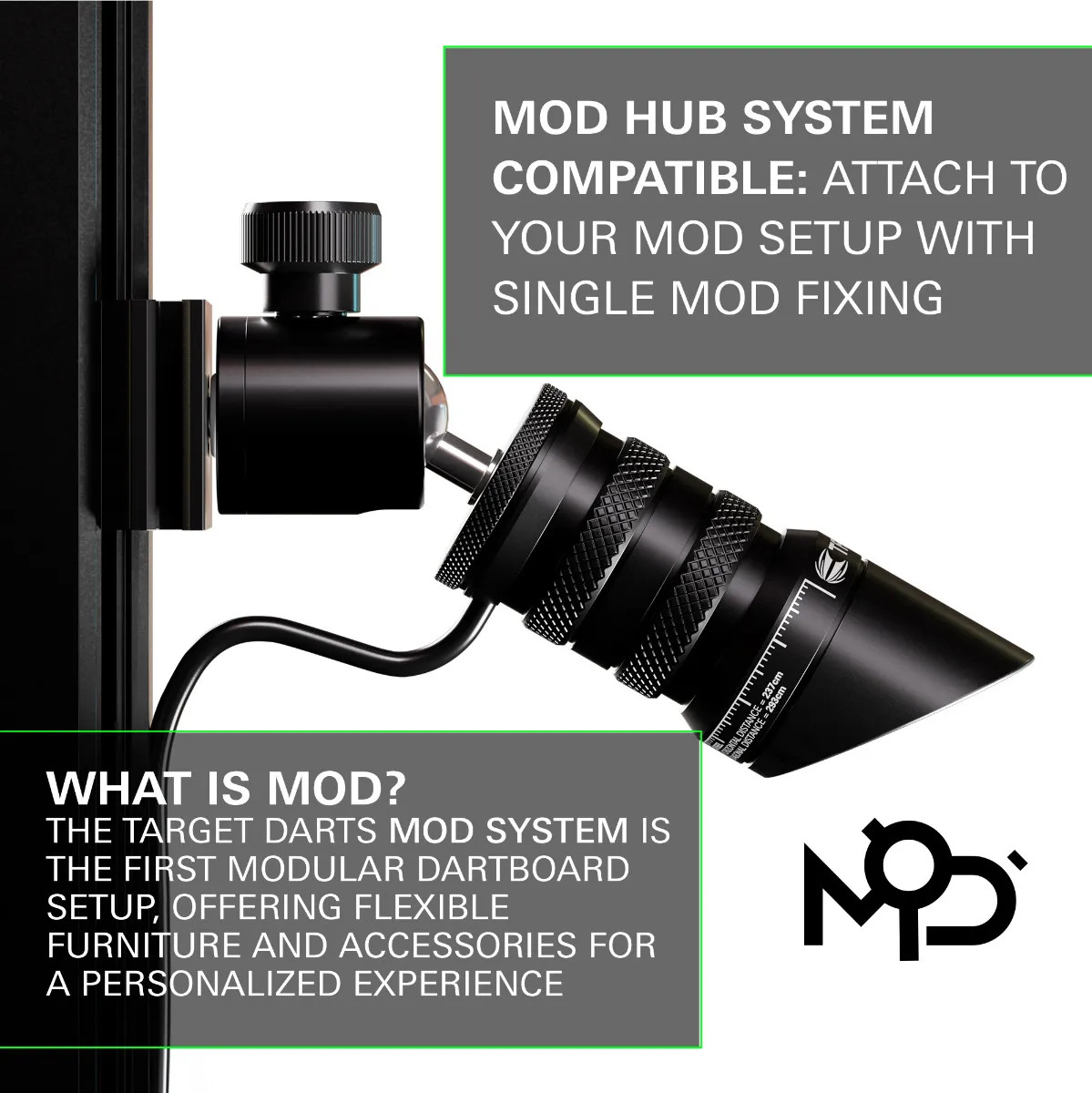 Fully compatible with MOD Hub Systems, players have the option to connect the laser oche and integrate with your existing MOD dartboard setup with the included fixing kit.