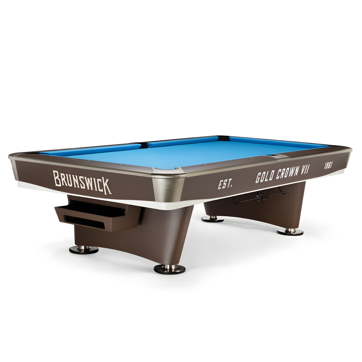 For generations, the Gold Crown has been the hallmark of precision in competitive billiards. The Gold Crown VII continues that legacy, introducing structural and material advancements that redefine performance and longevity. This table was engineered for unparalleled stability, replacing the traditional wood chassis with a structural steel base that supports the 30mm Brazilian slate with absolute stability. This foundation is complemented by an advanced integrated leveling system, designed for sustained accuracy over time. The playing experience is distinguished by Brunswick Gold Crown K-55 cushions made by Artemis, renowned globally for their reliable speed and rebound, and a newly calibrated pocket design that offers honest, predictable play. From its non-glare gun metal castings to its elegant, durable rail finish and iconic decorative corner apron trim, the Gold Crown VII is a testament to Brunswick’s heritage-a perfect convergence of design distinction and meticulous engineering.