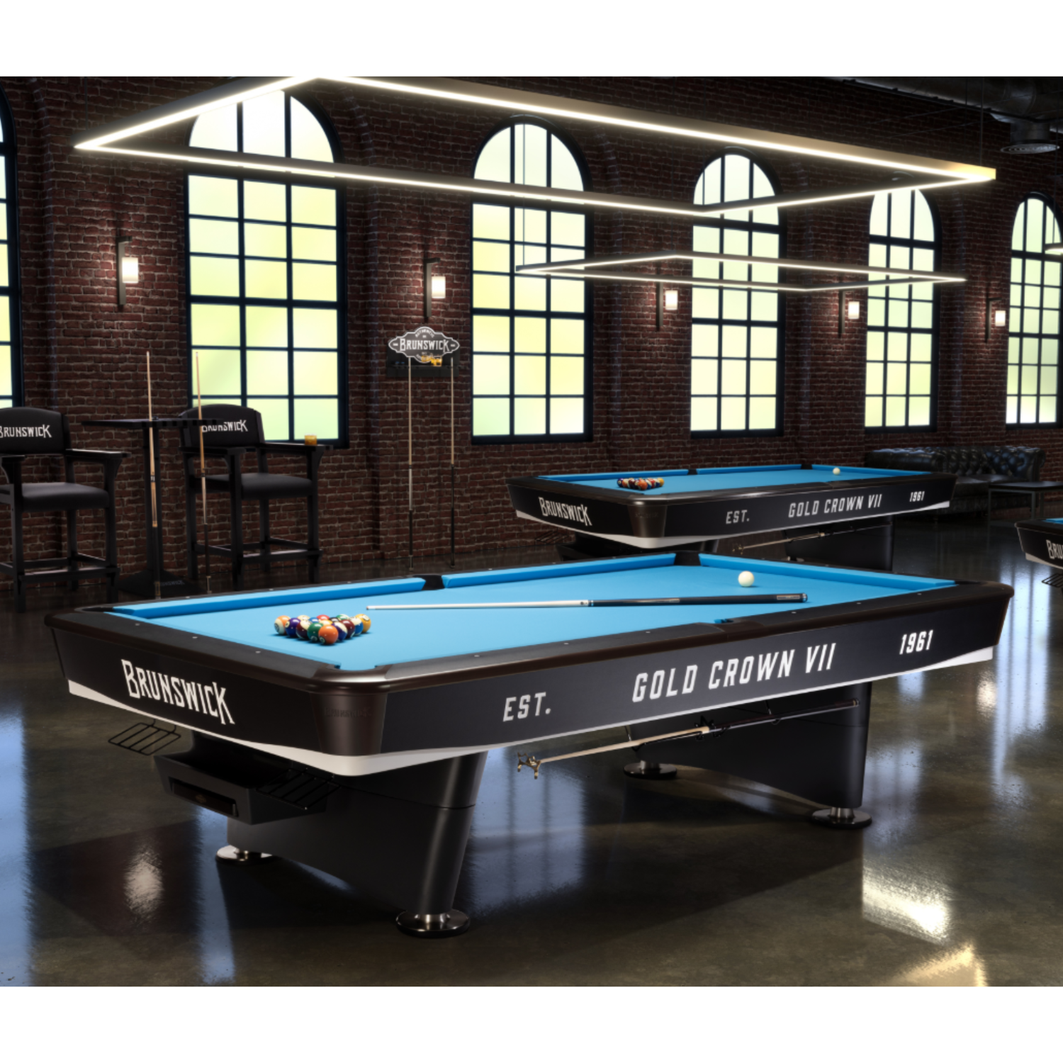 For generations, the Gold Crown has been the hallmark of precision in competitive billiards. The Gold Crown VII continues that legacy, introducing structural and material advancements that redefine performance and longevity. This table was engineered for unparalleled stability, replacing the traditional wood chassis with a structural steel base that supports the 30mm Brazilian slate with absolute stability. This foundation is complemented by an advanced integrated leveling system, designed for sustained accuracy over time. The playing experience is distinguished by Brunswick Gold Crown K-55 cushions made by Artemis, renowned globally for their reliable speed and rebound, and a newly calibrated pocket design that offers honest, predictable play. From its non-glare gun metal castings to its elegant, durable rail finish and iconic decorative corner apron trim, the Gold Crown VII is a testament to Brunswick’s heritage-a perfect convergence of design distinction and meticulous engineering.