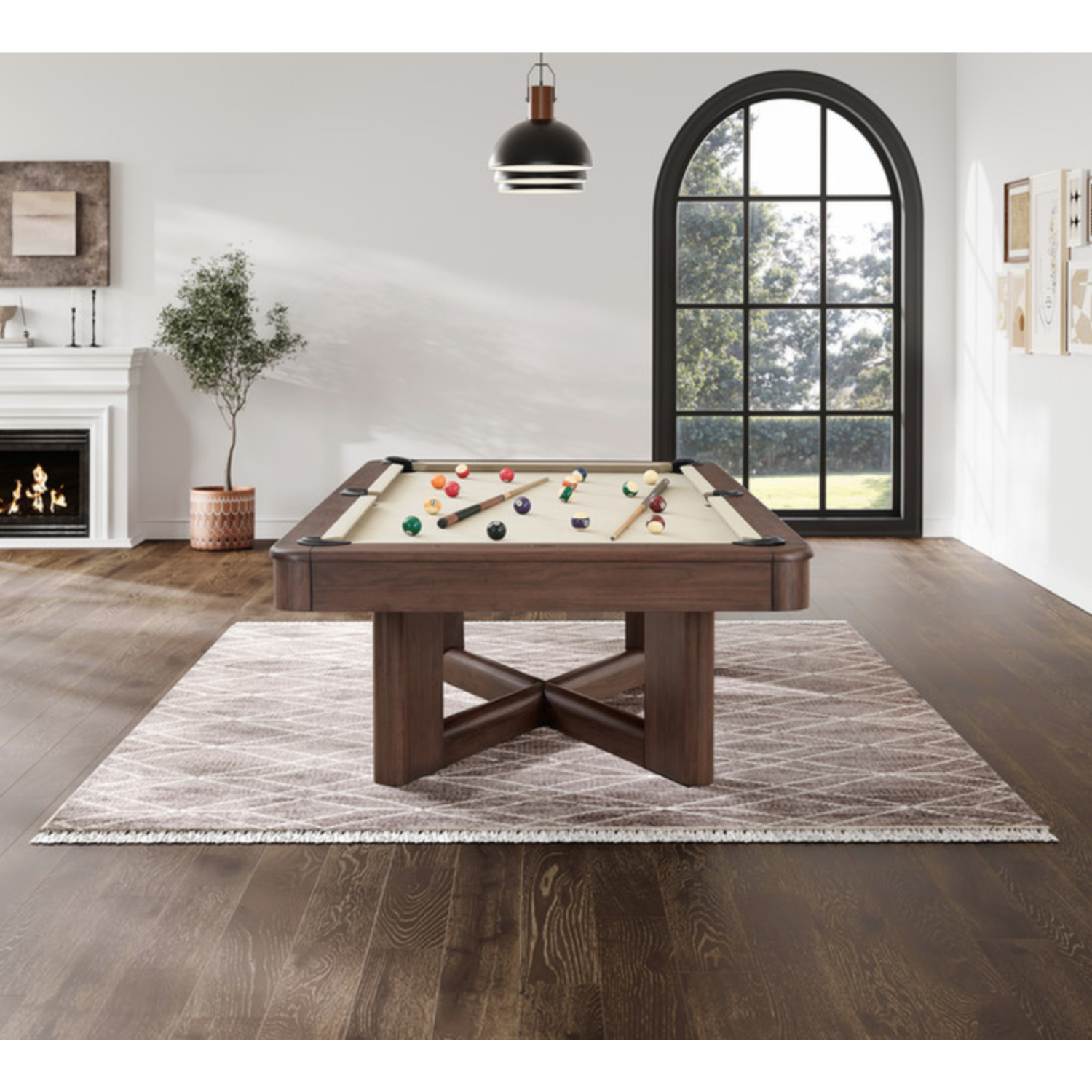 Elevate your game with The Ashford, a stunning fusion of contemporary design and classic craftsmanship. Built for both style and performance, this exquisite pool table features a beautiful solid wood frame with a warm, Dark Chestnut finish that complements any home decor. A bold, geometric leg design adds a modern touch while ensuring stability for even the most competitive games. Perfect for casual games with family or high-stakes showdowns with friends, The Ashford transforms any space into the ultimate entertainment hub. Bring home The Ashford and enjoy a perfect balance of sophistication and playability.