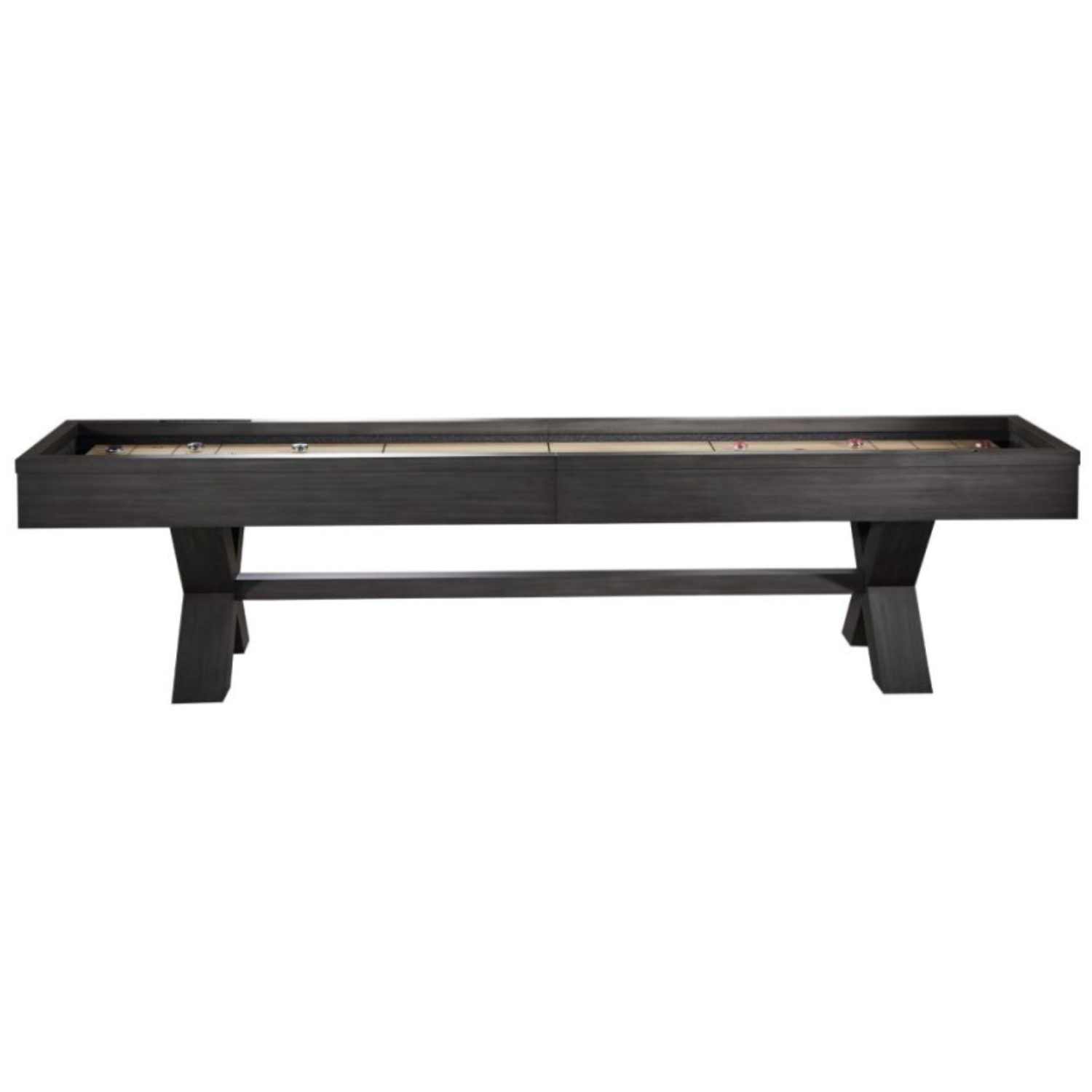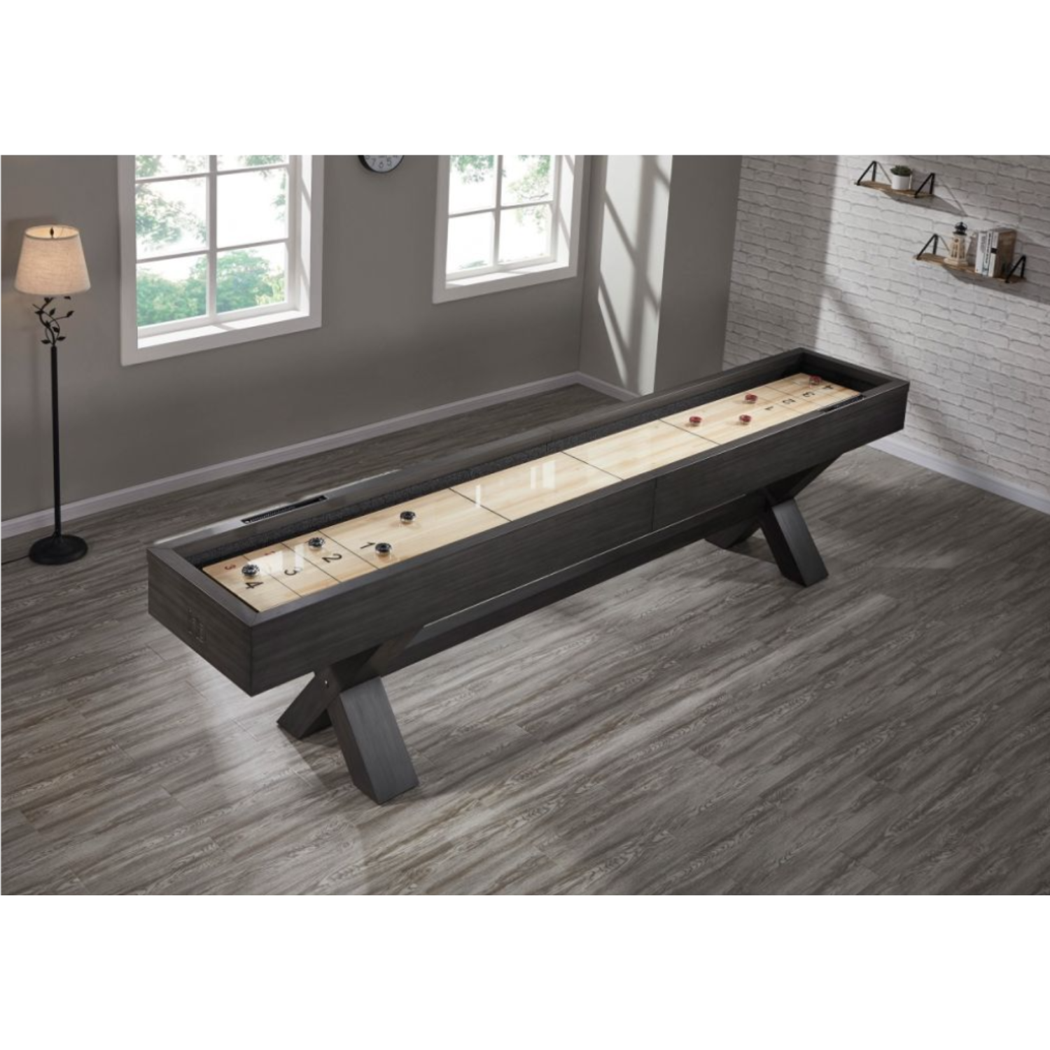 Introducing the 12' Blake Shuffleboard Table – a perfect blend of style, durability, and gameplay precision. Crafted from high-quality Engineered wood and melamine board, this table features a heavy-duty 16" wide x 2-1/8" high rubber wood frame for exceptional stability. The polymer-coated playfield ensures a smooth, fast glide, while built-in climatic adjusters let you fine-tune your game surface. Designed for players of all skill levels, it offers multiple scoring systems to challenge both novices and pros. Complete with 8 ABS and chrome-plated steel pucks, the Blake Shuffleboard delivers endless entertainment for your home.