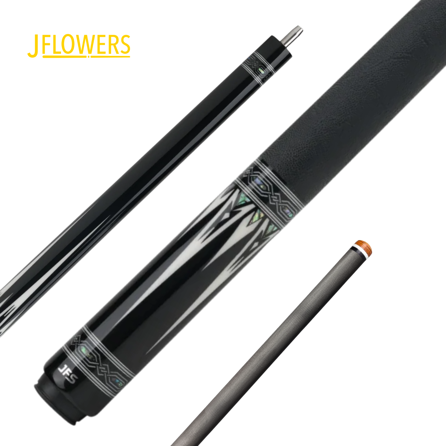 The Arden Classic delivers bold contrast with a high-gloss ebony finish, long white polymer dagger points, and aluminum accents for razor-sharp definition. Jeweled abalone inlays in octagonal and diamond patterns add depth and movement.