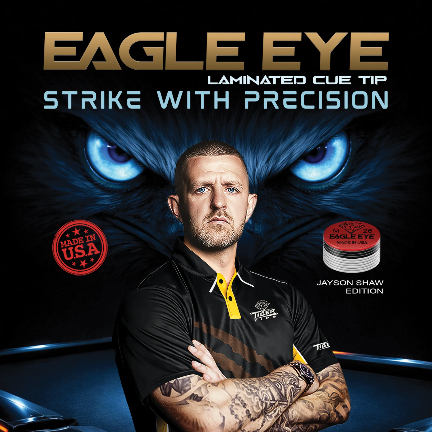 The Eagle Eye Laminated Cue Tip – Jayson Shaw Edition is the result of a collaboration between Tiger Products and one of the most precise players in the world, Jayson “Eagle Eye” Shaw. Known for his precise game, including winning multiple championship titles and holding the world record high run of 832 consecutive balls, Shaw’s game is built on focus, consistency, and absolute precision—qualities that inspired the design of this tip.