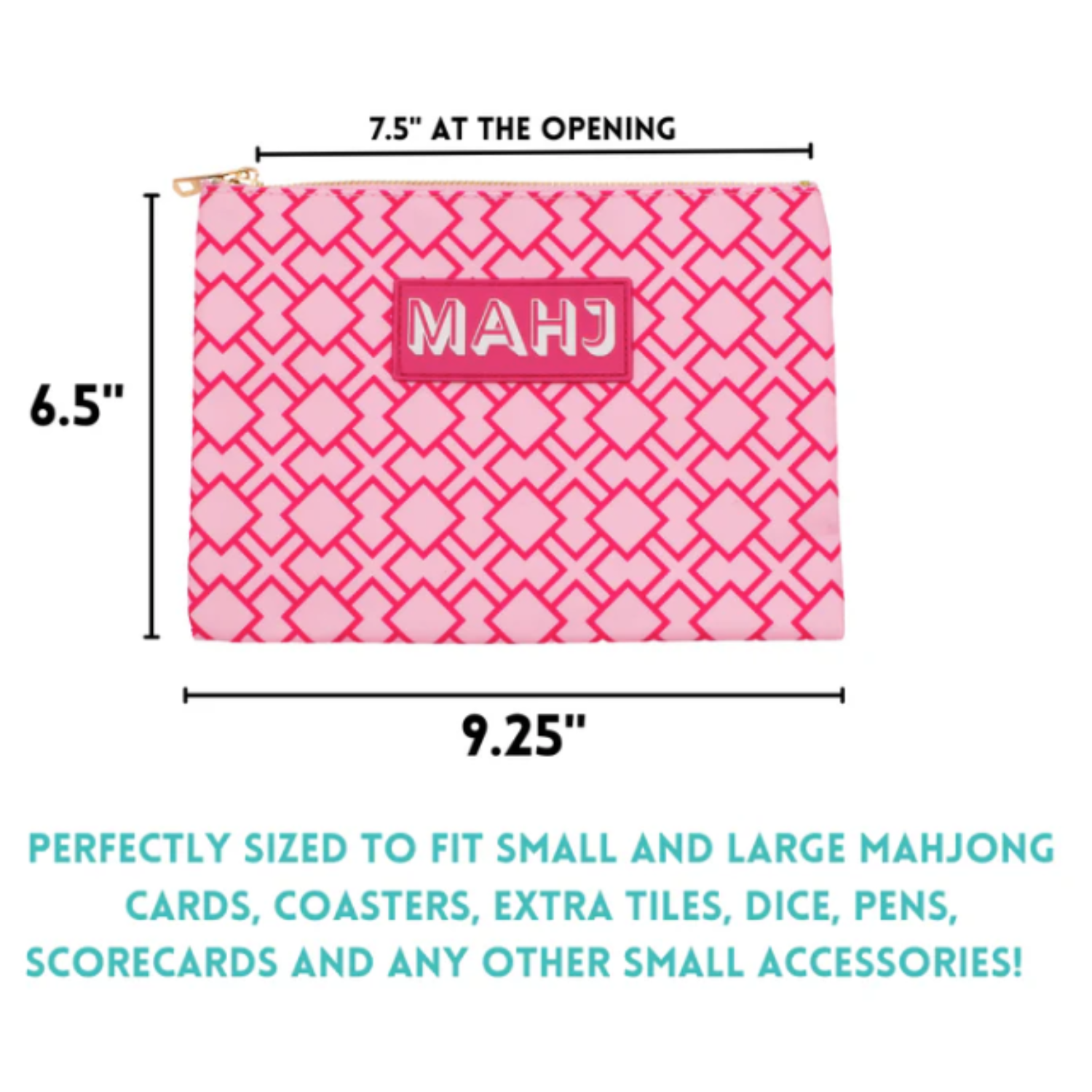 Introducing My Fair Mahjong's Premium Card & Accessory Bags in a variety of colorful patterns and designs. These bags fit large mahjong cards, spare tiles, dice, and many other small accessories. These bags coordinate with MFM's premium tile, tote and rack bag options! Featuring a sewn-on rubber patch that says "MAHJ", this bag is a wonderful and stylish addition to your mahjong set and accessories.