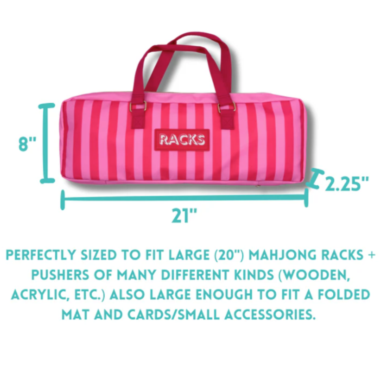 Introducing My Fair Mahjong's Premium Rack Bags. These bags feature shoulder straps for easy carry, 4 padded pockets to keep large/oversized racks safe and is large enough to accommodate a folded mat and your cards/accessories too. So, grab your tiles and this rack bag and head out for the best night of the week!! MAHJONG!