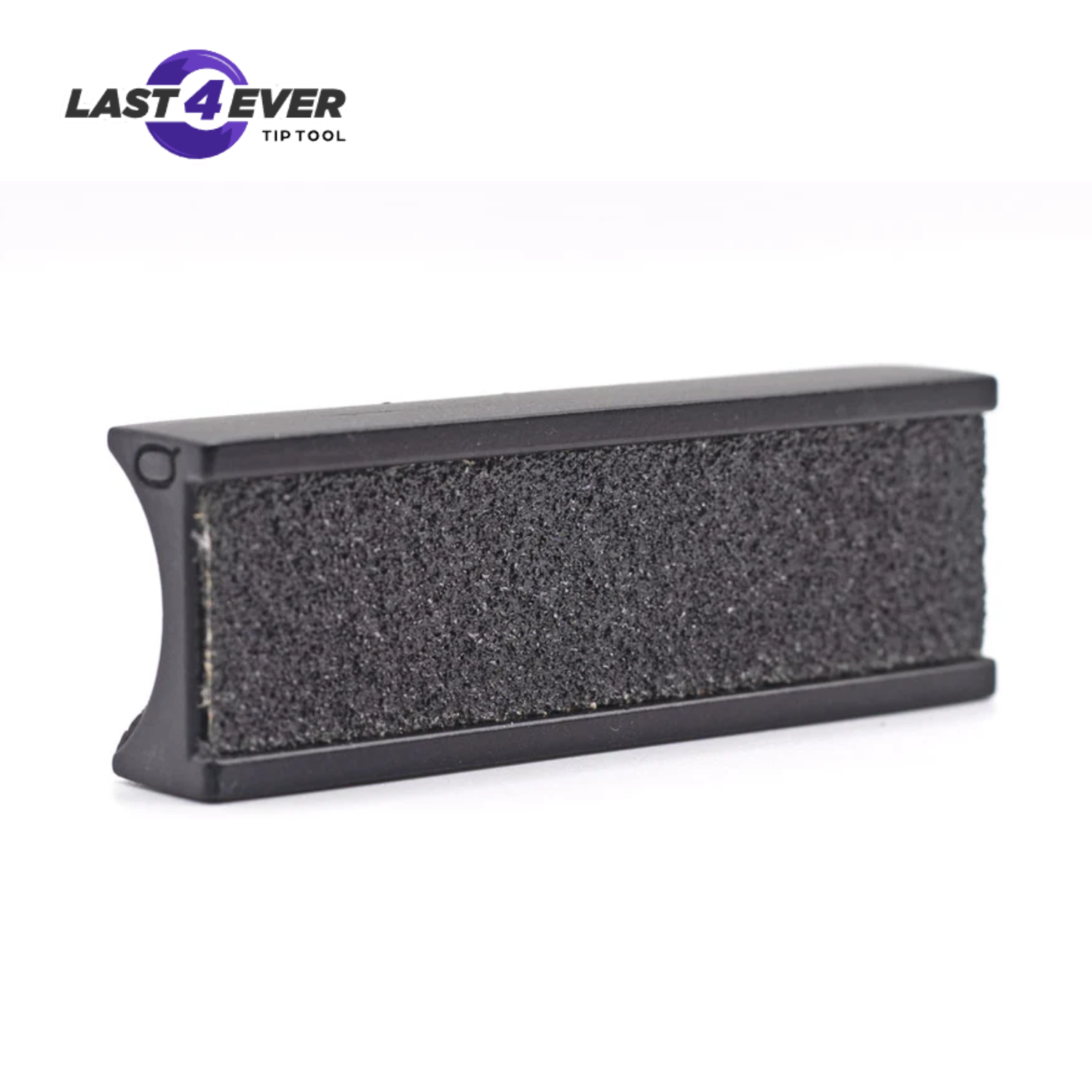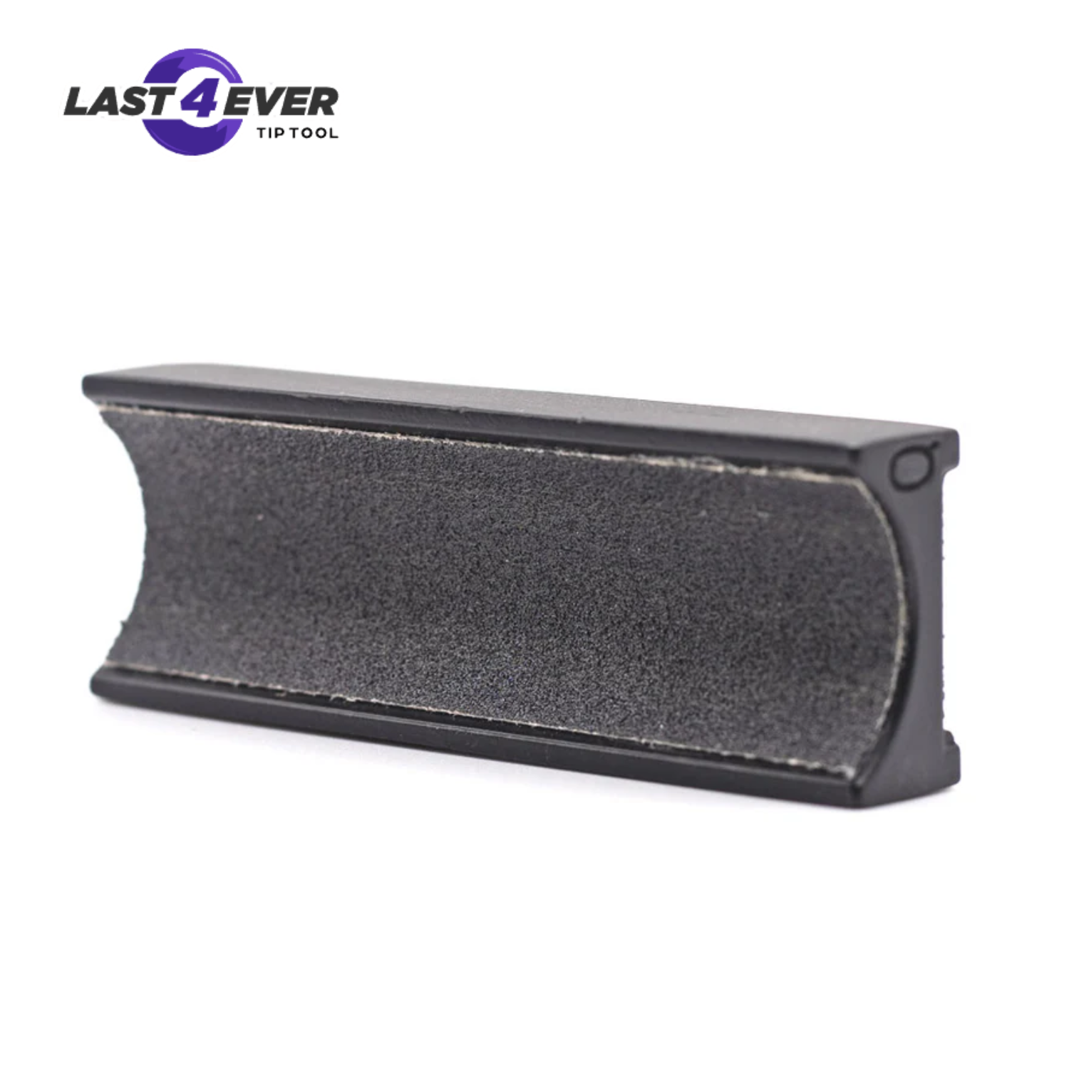 The Original 4 way Last4Ever Tip Tool where each side of the tool has a specific function. A radius side to shape or reshape tip radius, a recessed flat side to scuff tip without removing any leather material (recessed so it will not scratch furniture), an abrasive edge for mushroom repair, and a leather edge for tip burnishing.