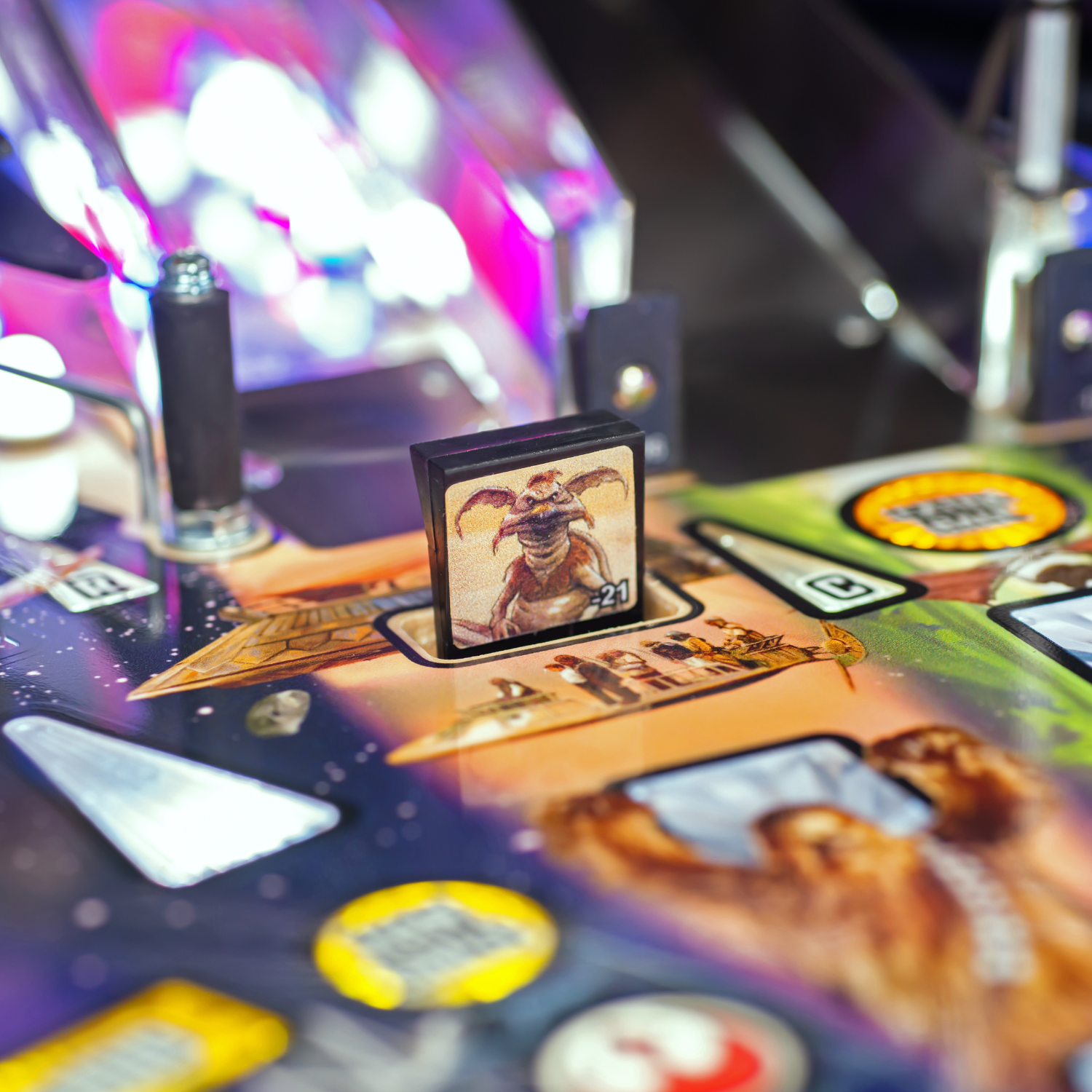 In Stern Pinball’s Star Wars: Fall of the Empire pinball games; players will take part in the adventures that started it all and experience iconic Star Wars-inspired moments through a pinball experience like no other. Players will take down the AT-AT by attaching their snowspeeder’s tow cable and shooting the spiral ramp to send it crashing down, mirroring the breathtaking scene from Star Wars: The Empire Strikes Back. Destroy the Death Star II from Star Wars: Return of the Jedi by lowering shields on the battle station during Death Star Multiball to save the galaxy. Players can also escape from Cloud City when reactivating the Millennium Falcon’s hyperdrive by hitting the center jump ramp to escape to hyperspace. Throughout the pinball experience, players will enter Jabba the Hutt’s Sarlacc Pit, battle stormtroopers, defeat TIE fighters, and even mimic using the Force to save your ball on the journey to defeating the Empire. Feel the power of the dark side as you enjoy special Darth Vader-inspired modes.