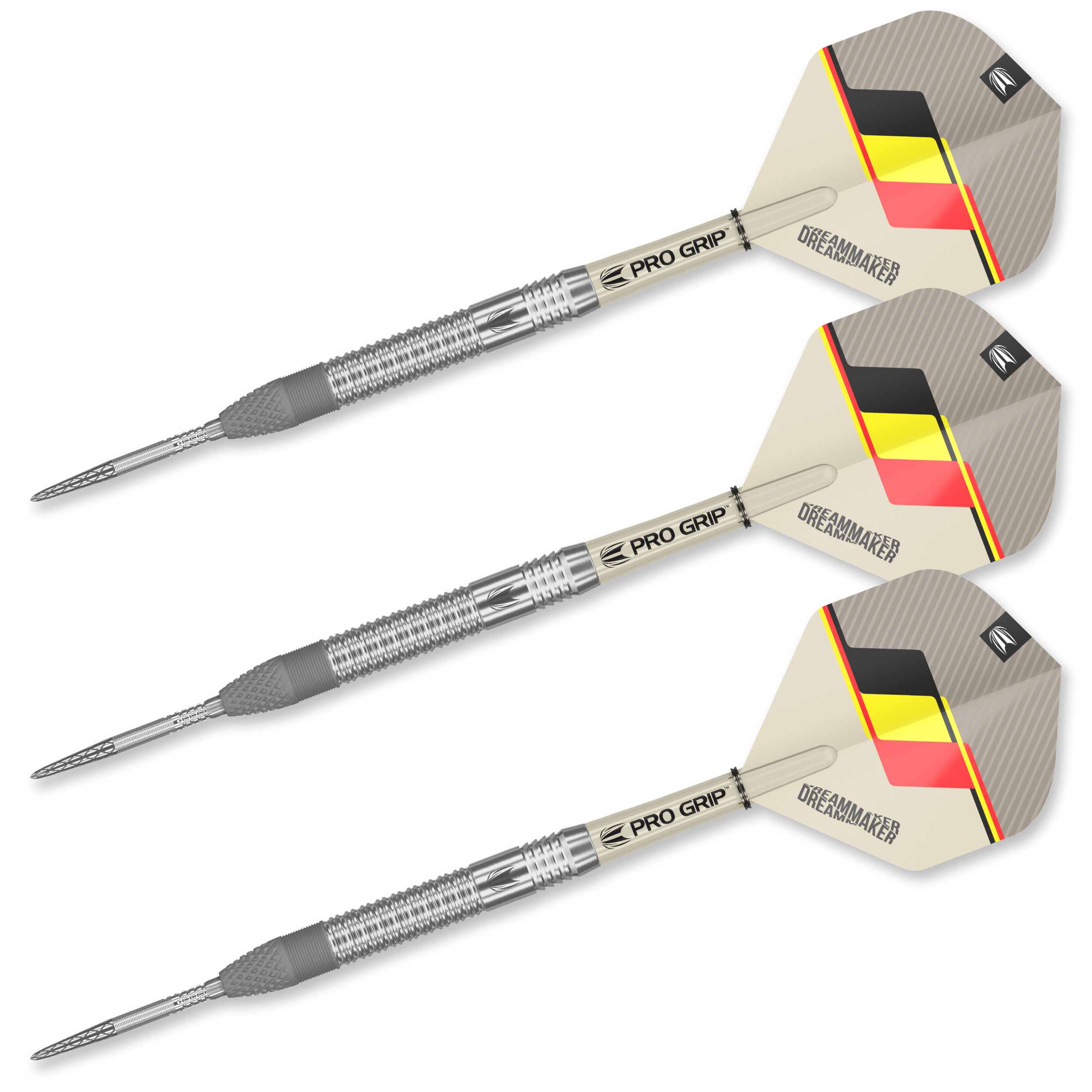 The Dimitri Van den Bergh Generation 1 darts have been designed alongside the Dream Maker™ to Van den Bergh’s exact requirements. The result is a beautiful 90% tungsten dart that suits a variety of grips. The straight barrel is tapered at the nose, has radial grooves, has been hand sandblasted to give the barrel a two-toned look with milling to provide grip. This Generation 1 dart comes with a Pro Grip sand, Dimitri's No6 Flight, and DX Swiss Points or Pixel tips.